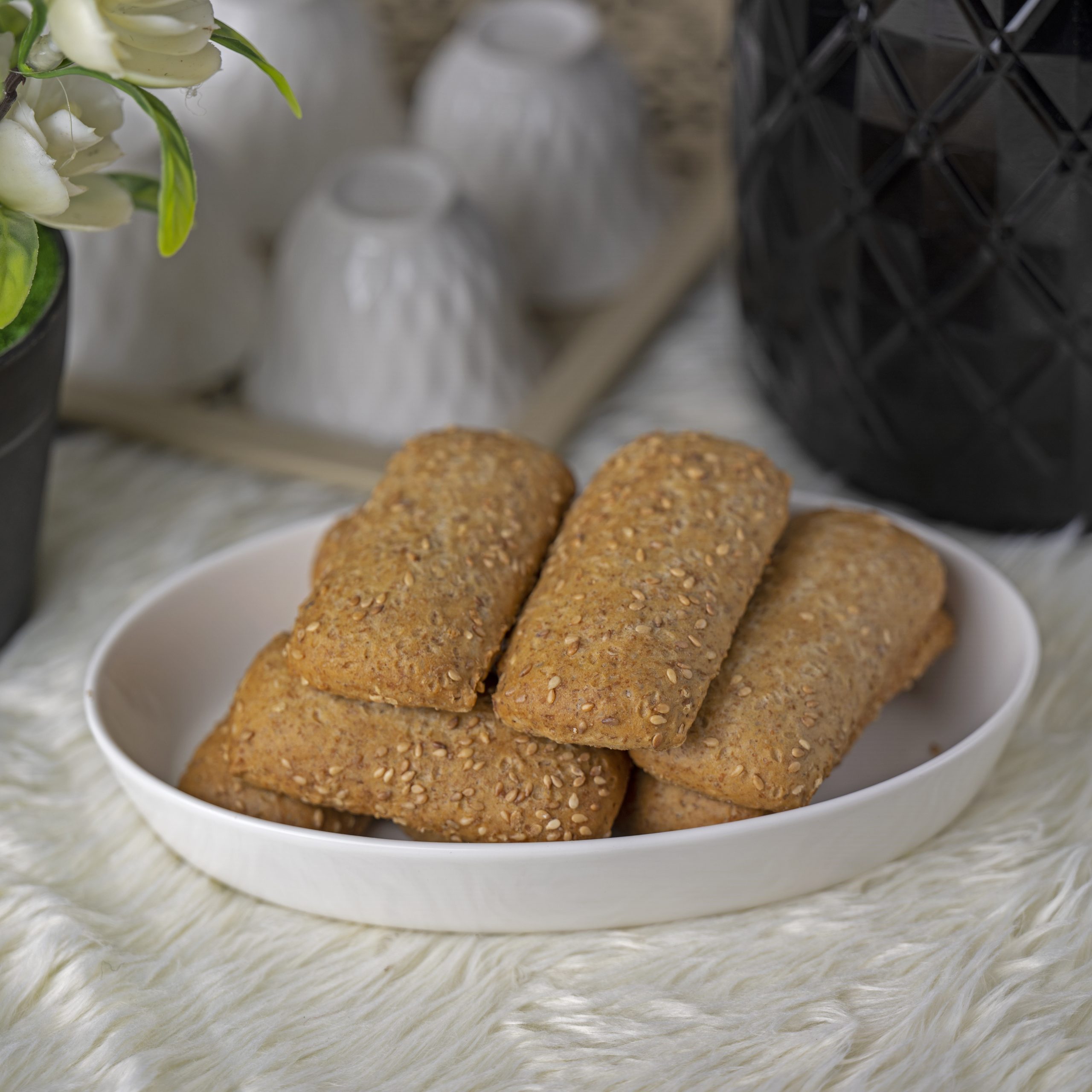 ونظراً لفوائد السمسم العديدة ، حرصت شهم على إنتاج بقصم بالسمسم ، حيث قدمت شهم البقصم بدقيق البر مع قطع السمسم لتمنحك تجربة صحية ولذيذة .