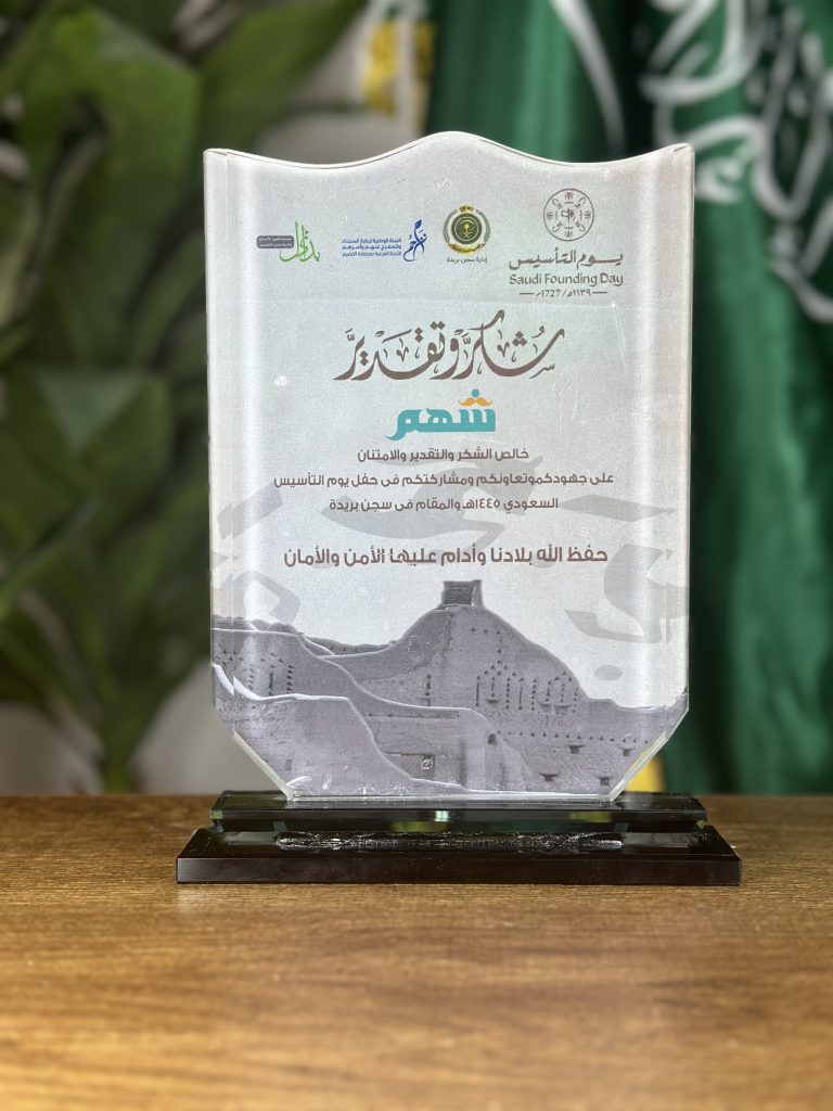 تتقدم شركة حلا الجزيرة الصناعية بخالص الشكر والتقدير على تكريمنا لرعايتنا حفل يوم التأسيس السعودي في سجن بريدة في عام 2024. نحن فخورون بمساهمتنا في تنظيم هذا الحدث الوطني الهام، الذي يعكس روح الوحدة والتاريخ العريق للمملكة. يعكس هذا التكريم التزامنا بدعم المبادرات التي تعزز القيم الوطنية والمجتمعية.